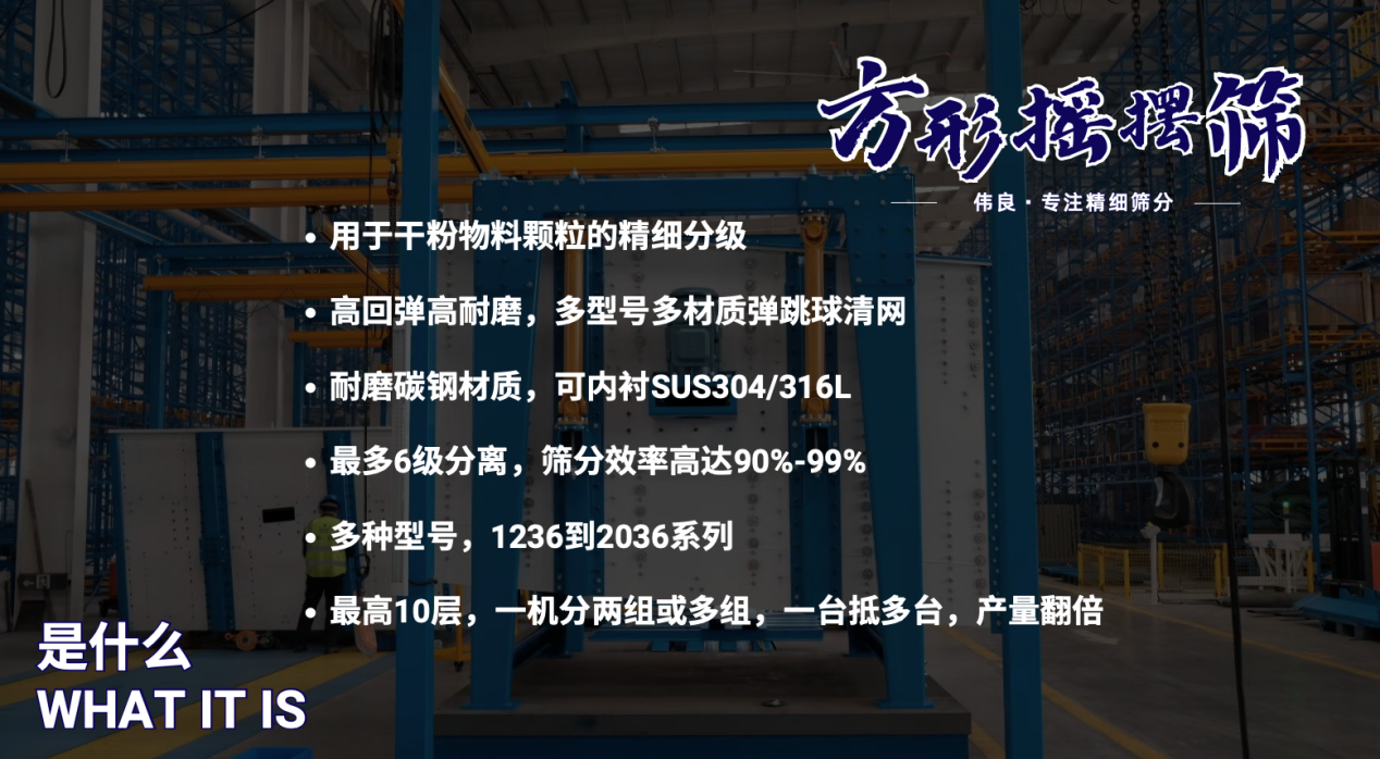• 然后,經(jīng)過(guò)初步篩選的砂進(jìn)入偉良方形搖擺篩,普遍客戶會(huì)選擇大的機(jī)型2036型號(hào),6層/8層/或10層,它夠精確地篩選出符合要求的砂粒粒徑范圍,確保顆粒級(jí)配符合工程標(biāo)準(zhǔn)。